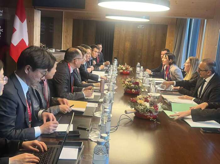 2026年1月21日,商务部国际贸易谈判代表兼副部长李成钢在瑞士达沃斯会见瑞士联邦经济和教研部国务秘书布德里格,双方就世贸组织改革、世贸组织第14届部长级会议筹备以及双方共同关心的双边经贸议题进行深入交流。